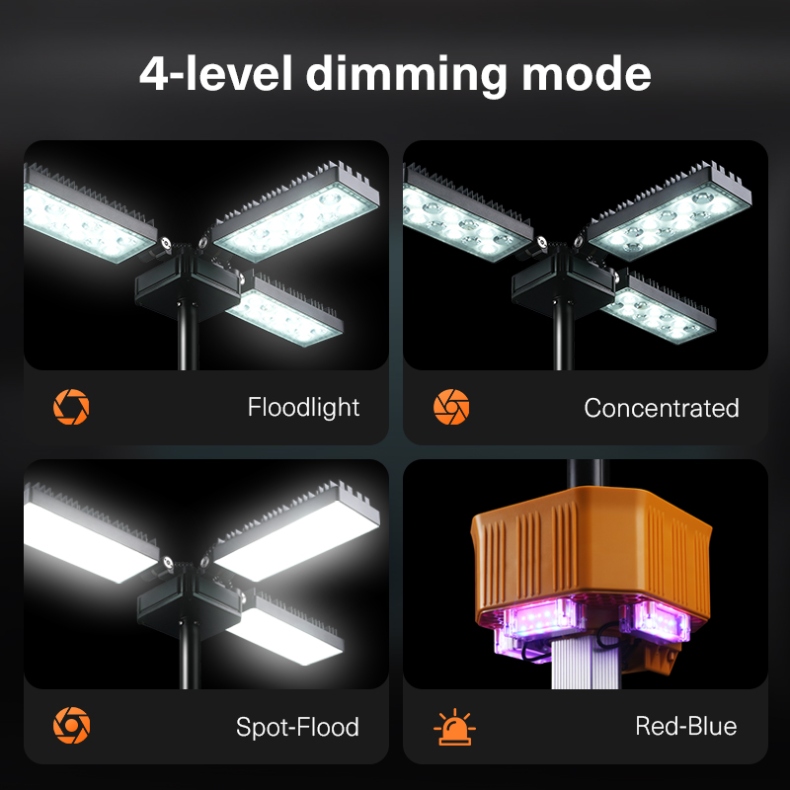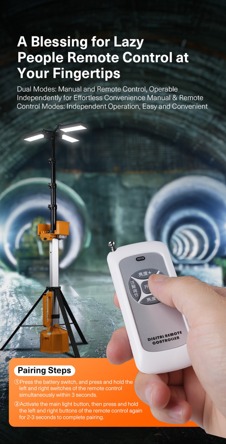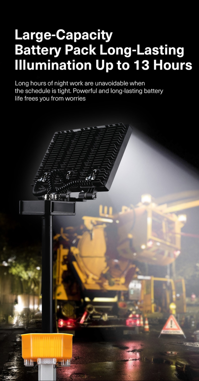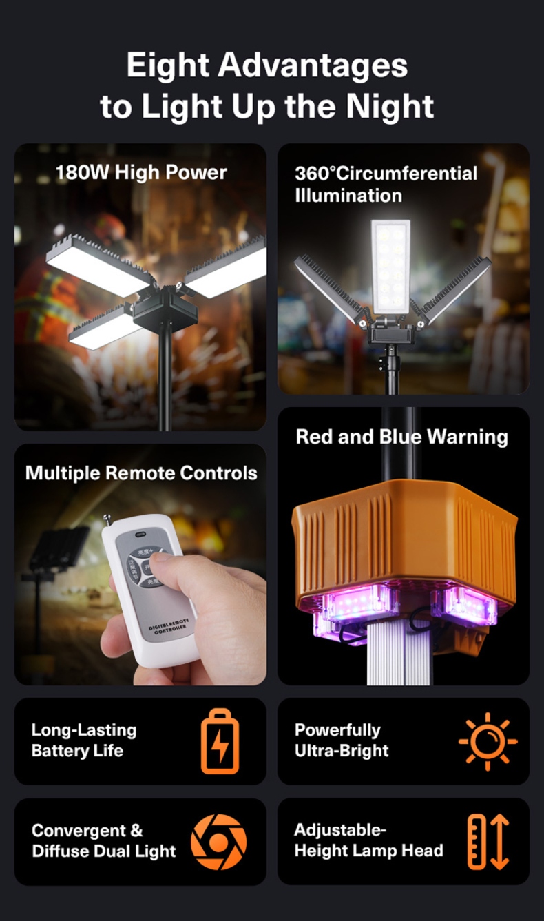 Telescopic Mast (5 Sections): The pole can be extended and retracted in five sections, allowing the light to reach a maximum height of 3.8 meters (about 12.5 feet), offering excellent flexibility in height adjustment.
