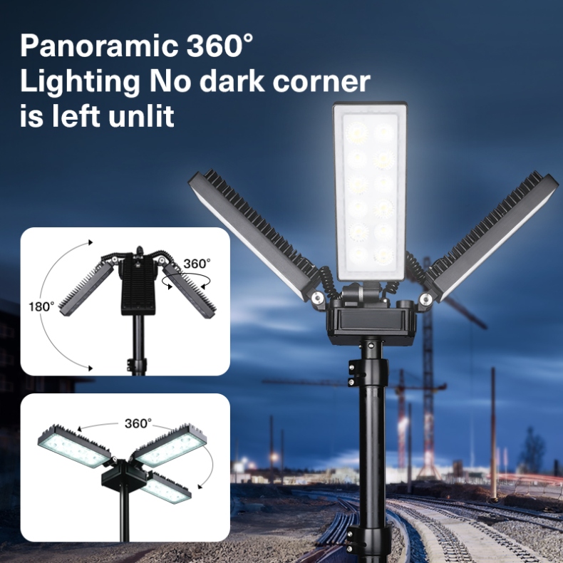 Triangular Stabilizing Legs: The base is equipped with triangular stabilizing legs, enhancing the stability and balance of the light, even in windy conditions.