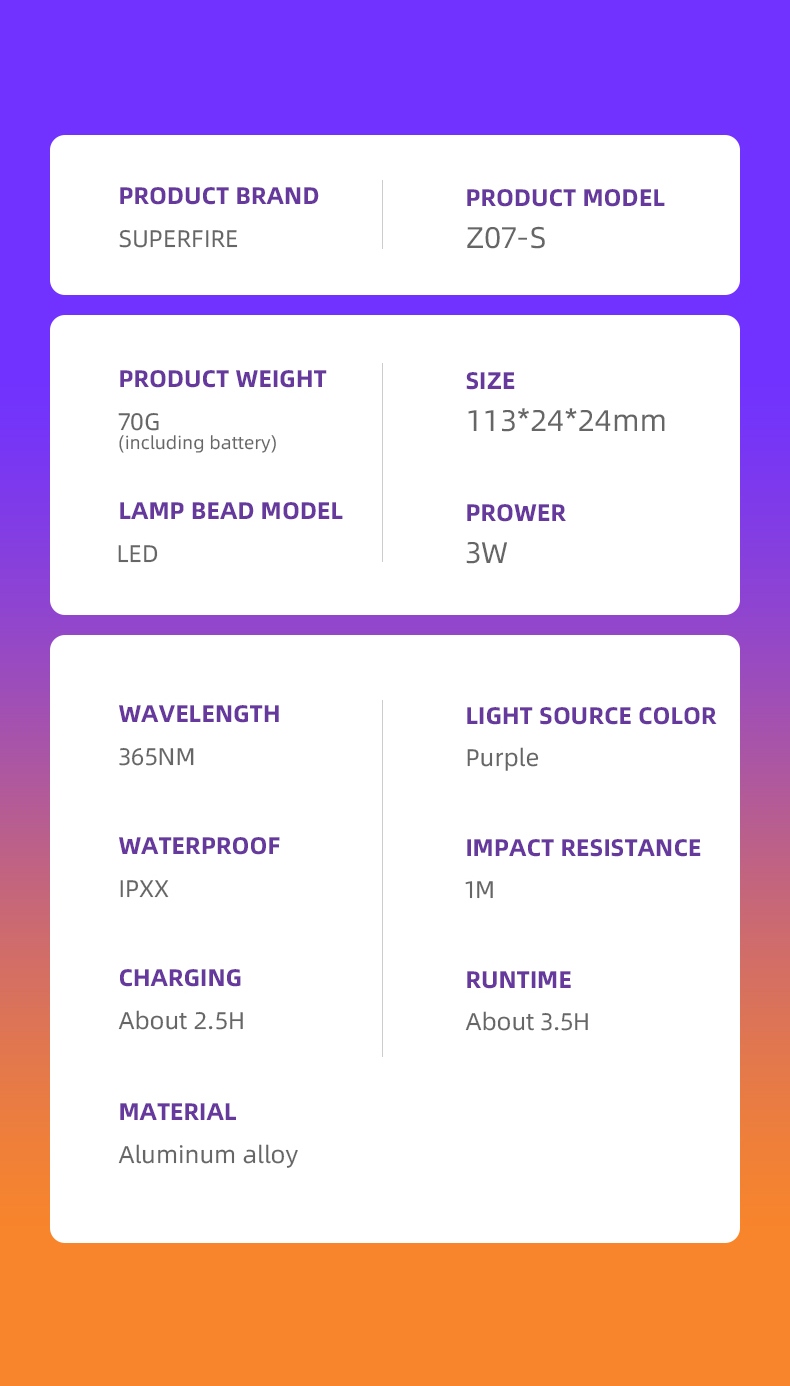 Home  > Products  > Professional Lights  > UV Flashlight  > SUPERFIRE Z07-S 365nm UV Flashlight