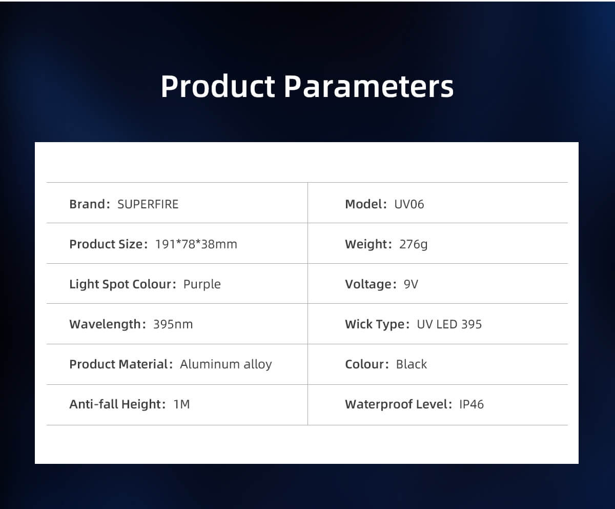 Home  > Products  > Professional Lights  > UV Flashlight  > SUPERFIRE UV06 395nm UV flashlight