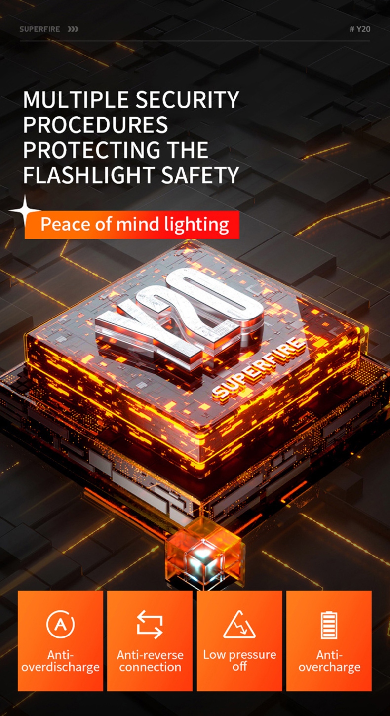 5.Multiple security procedures:protecting the flashlight safety