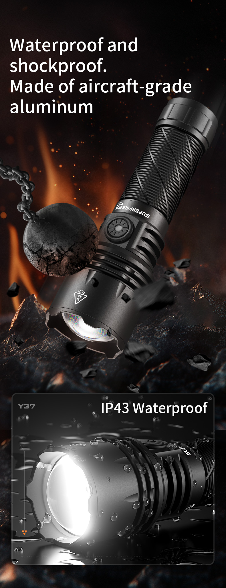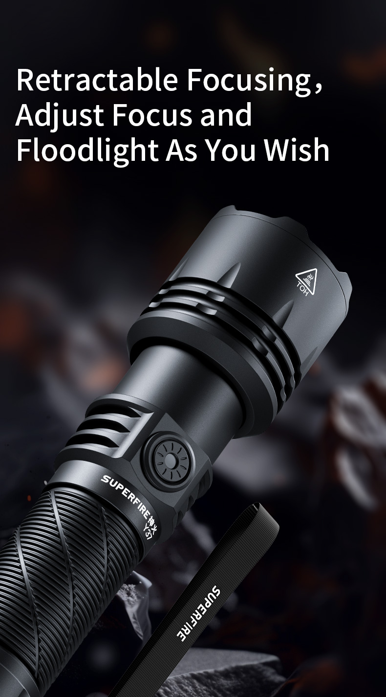 The SUPERFIRE Y37 is a high-performance long-range flashlight designed for outdoor enthusiasts and professionals who demand powerful illumination and versatility. With its impressive 950 lumens output and a beam distance of 650 meters, the Y37 is perfect for various applications, from camping and hiking to search and rescue operations.