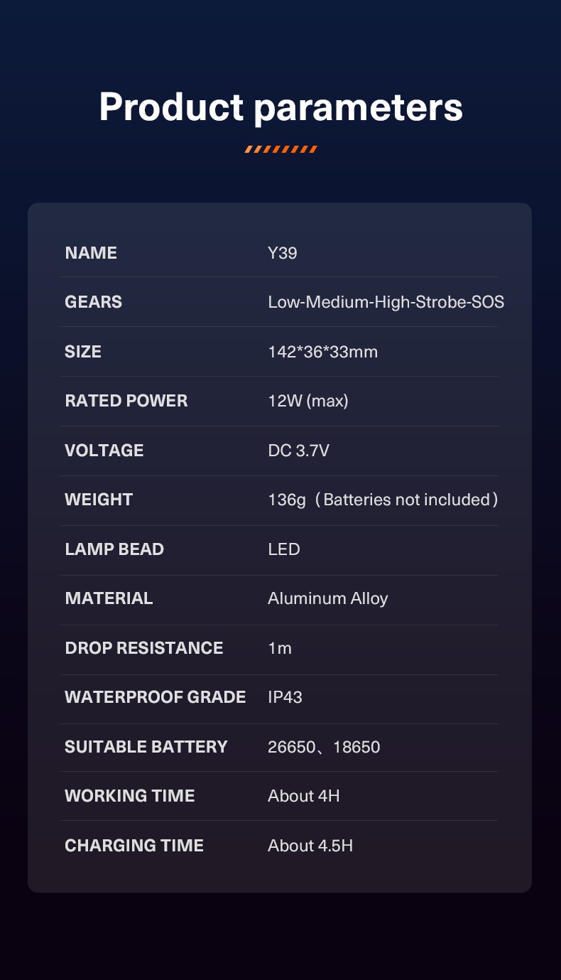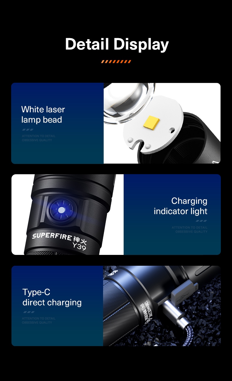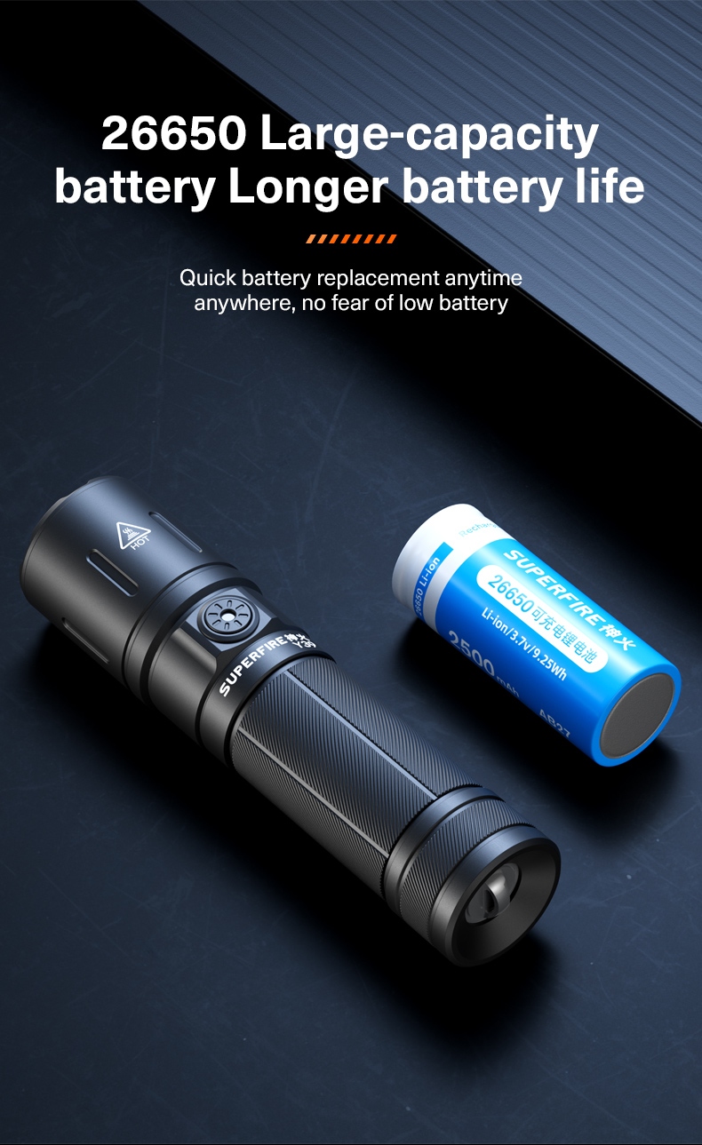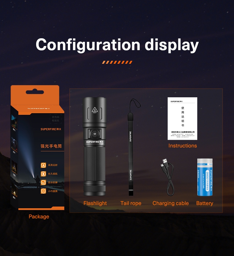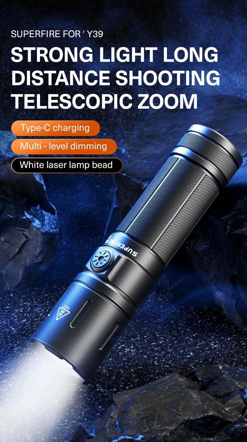 i. Y39 High-Power Flashlight (Black, with SUPERFIRE logo)