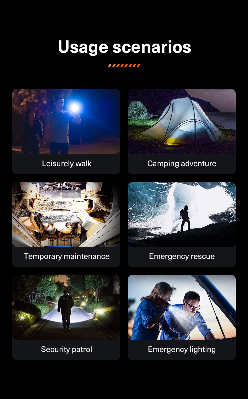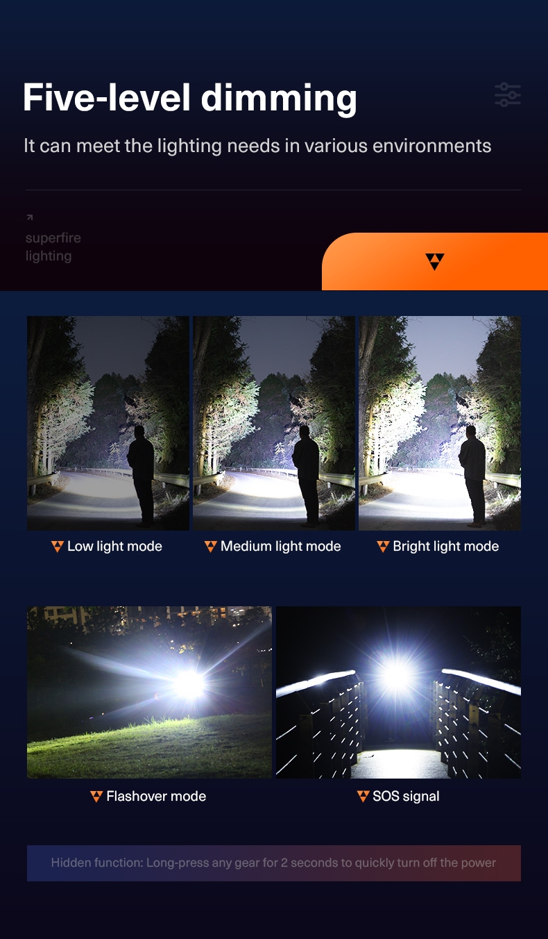 · Quick Off: Long press (2 seconds) in any mode to turn off the flashlight.