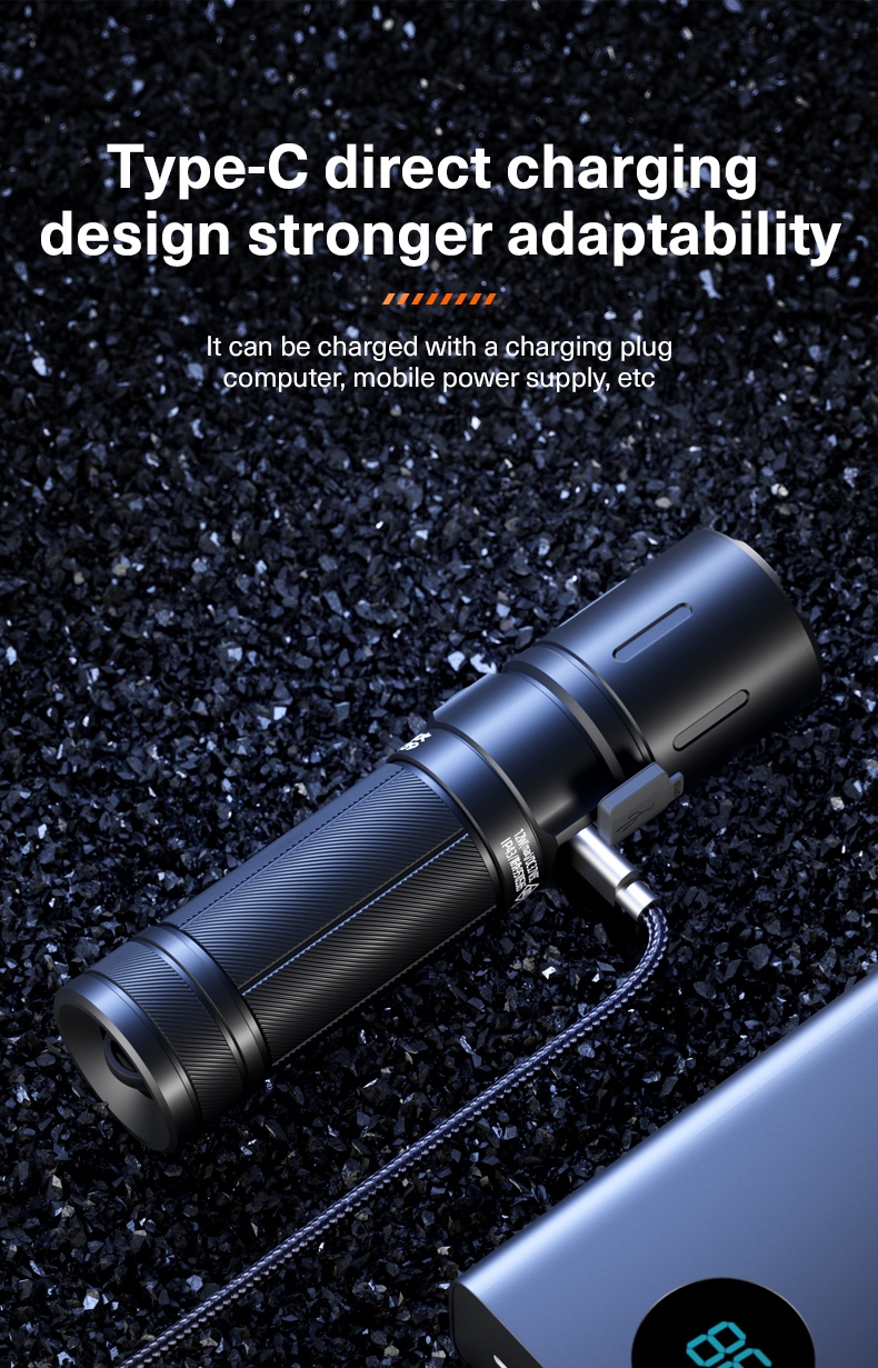 · Connect the included 750px Type-C cable to the flashlight and a power source (5V/1A).