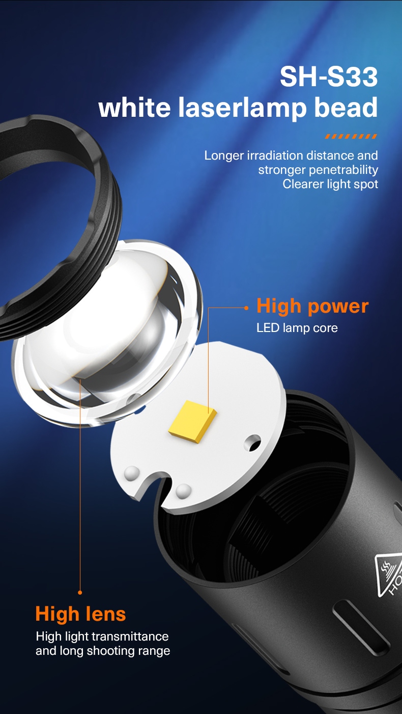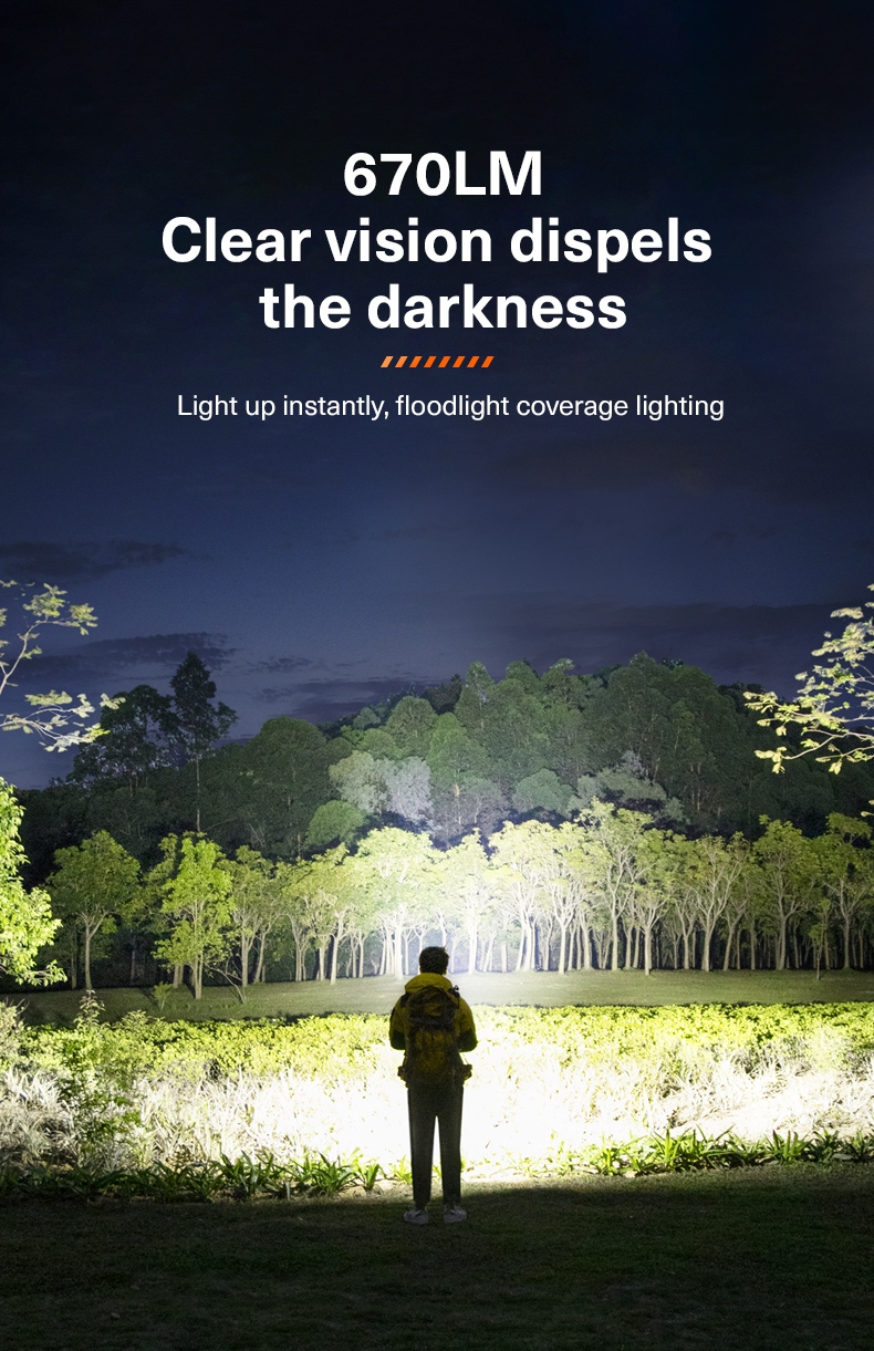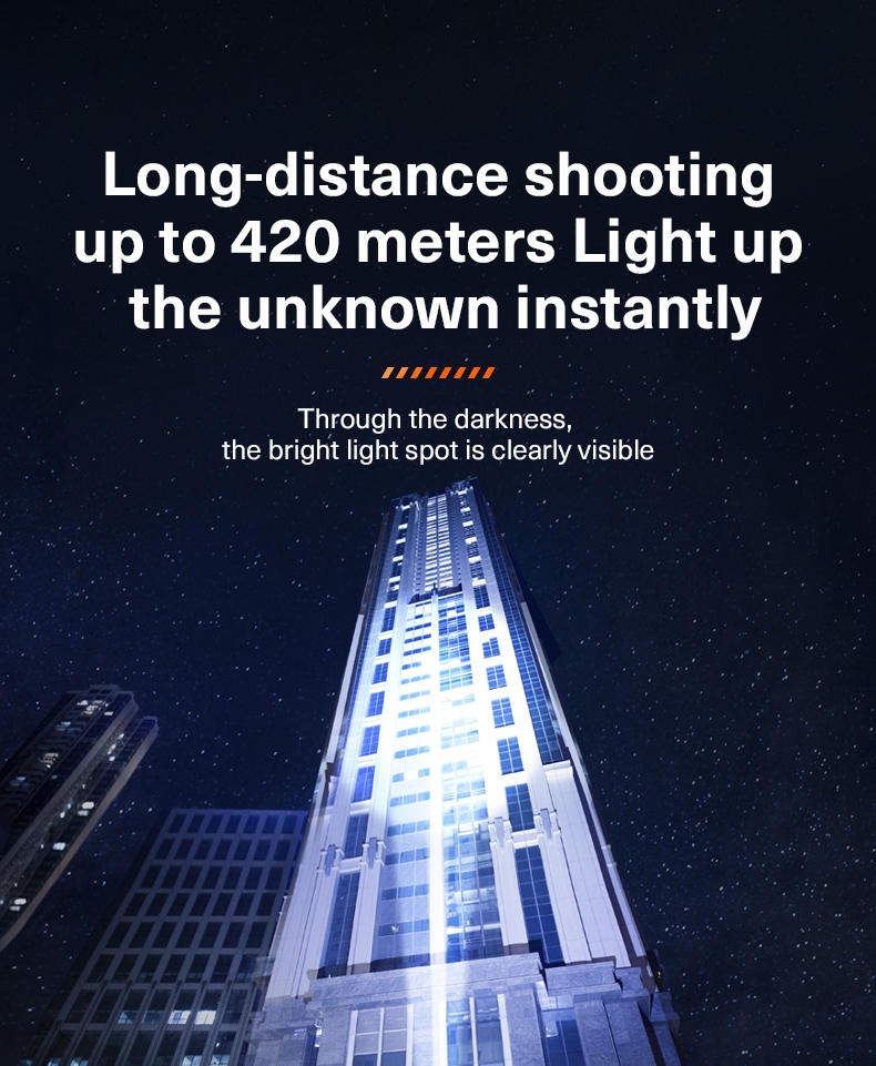 · Spot Light: Pull the lamp head outward for long-range (420m) visibility.