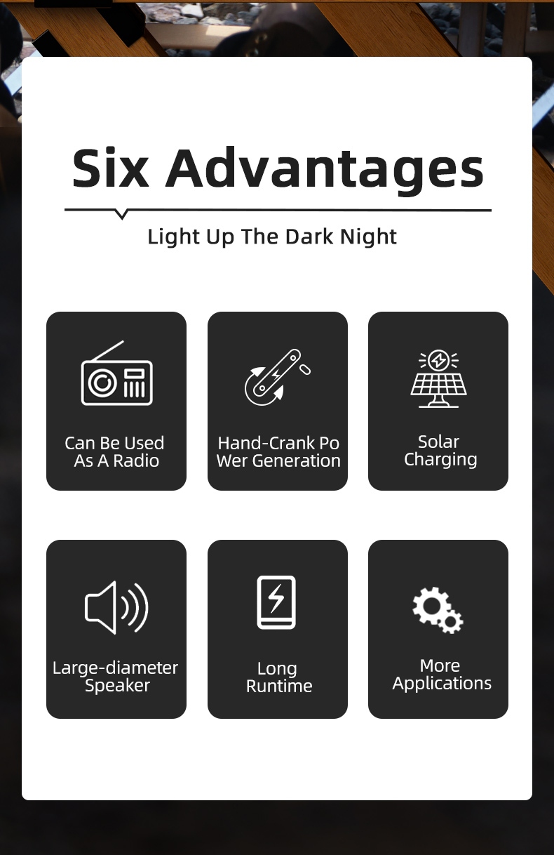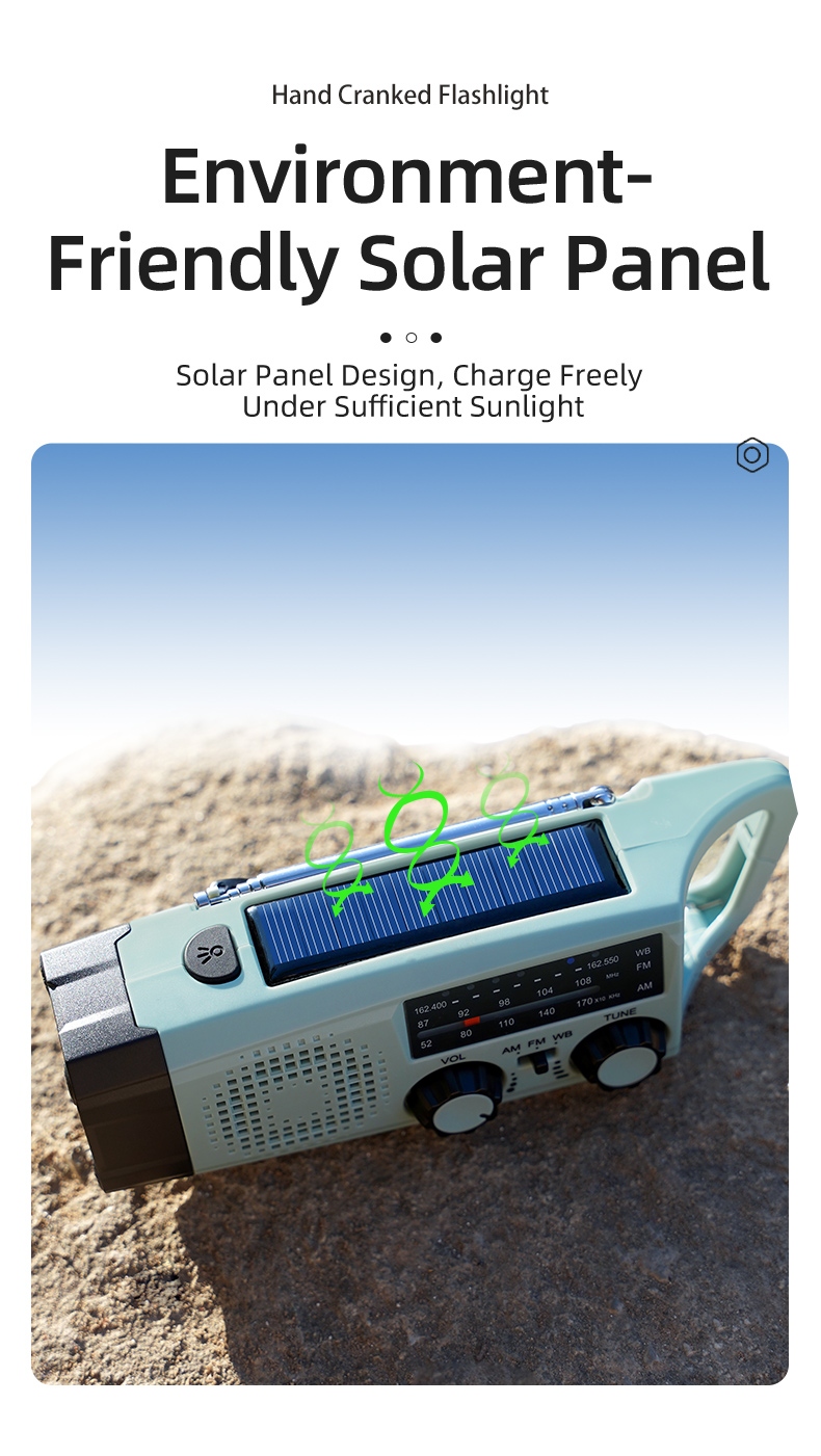 Charging Methods:Hand crank, Solar, USB