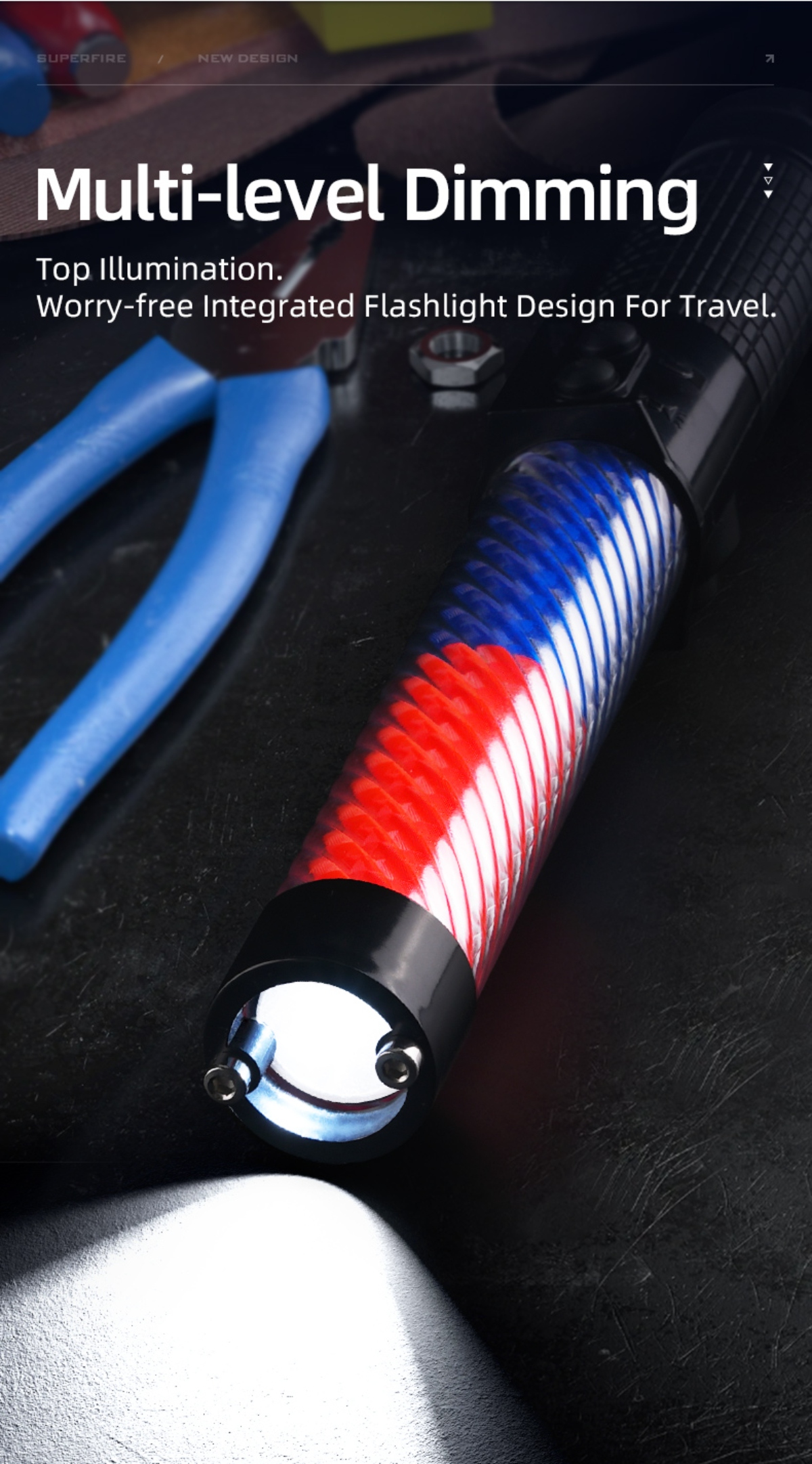 Multi-level Dimming, Top Illumination. Worry-free Integrated Flashlight Design For Travel.