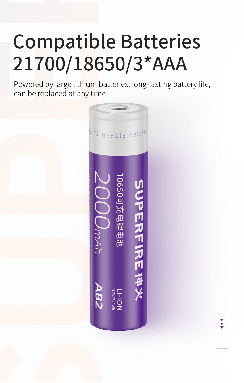 Battery: 18650 Li-ion, 2000mAh