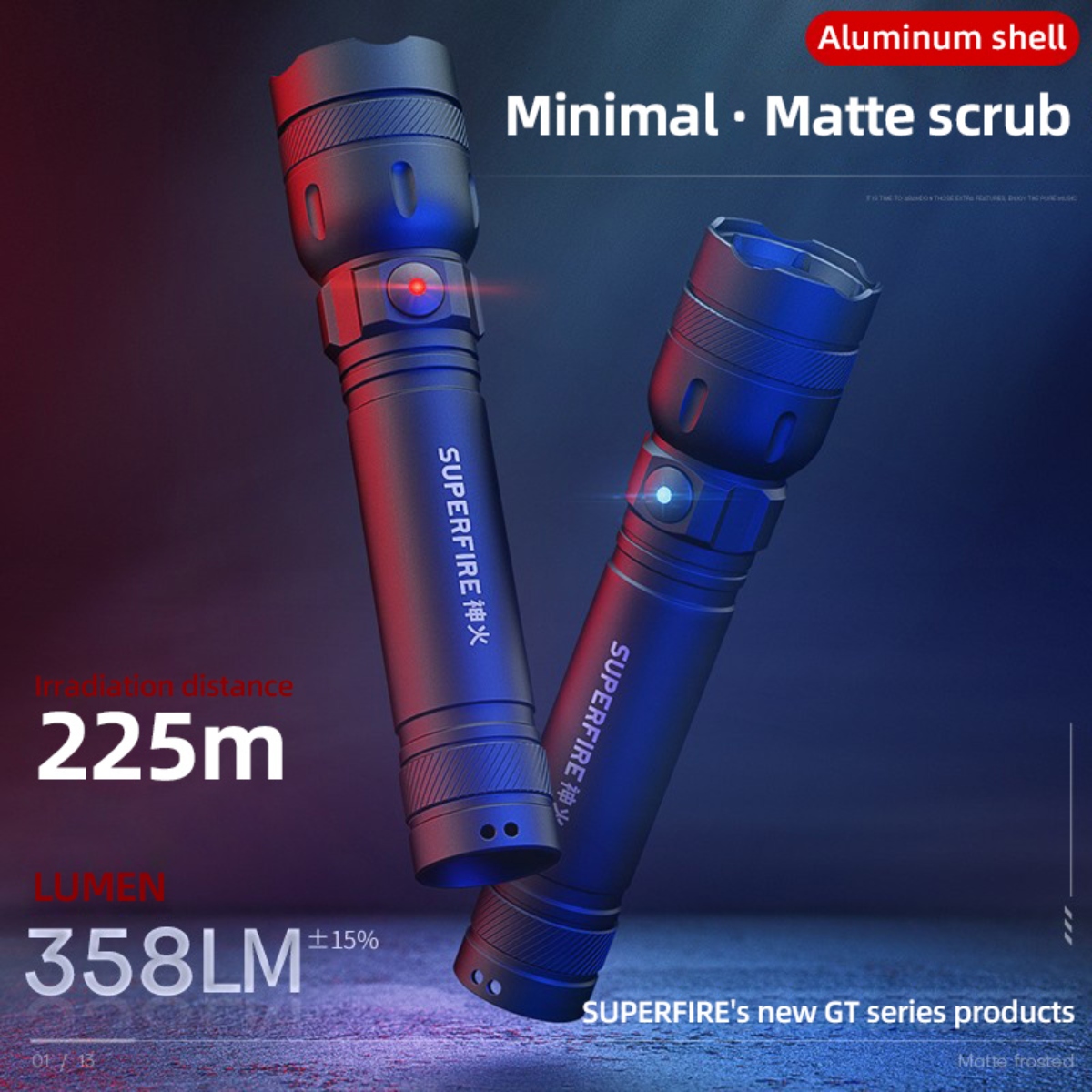 The SUPERFIRE GTS6 LED flashlight is a rechargeable mini flashlight that can emit up to 360 lumens from its built-in 1200mAh lithium battery. With a weight of 117 grams, this small LED flashlight is easy for hand holding. It’s perfect for ready-to-go lighting every day.