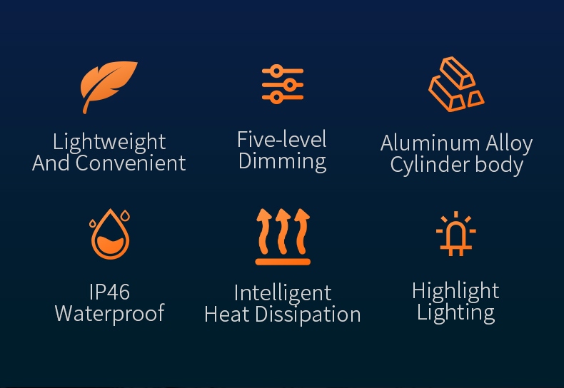 Five dimming levels: high light, medium light, low light, strobe light, and SOS light, cater to different scenarios.