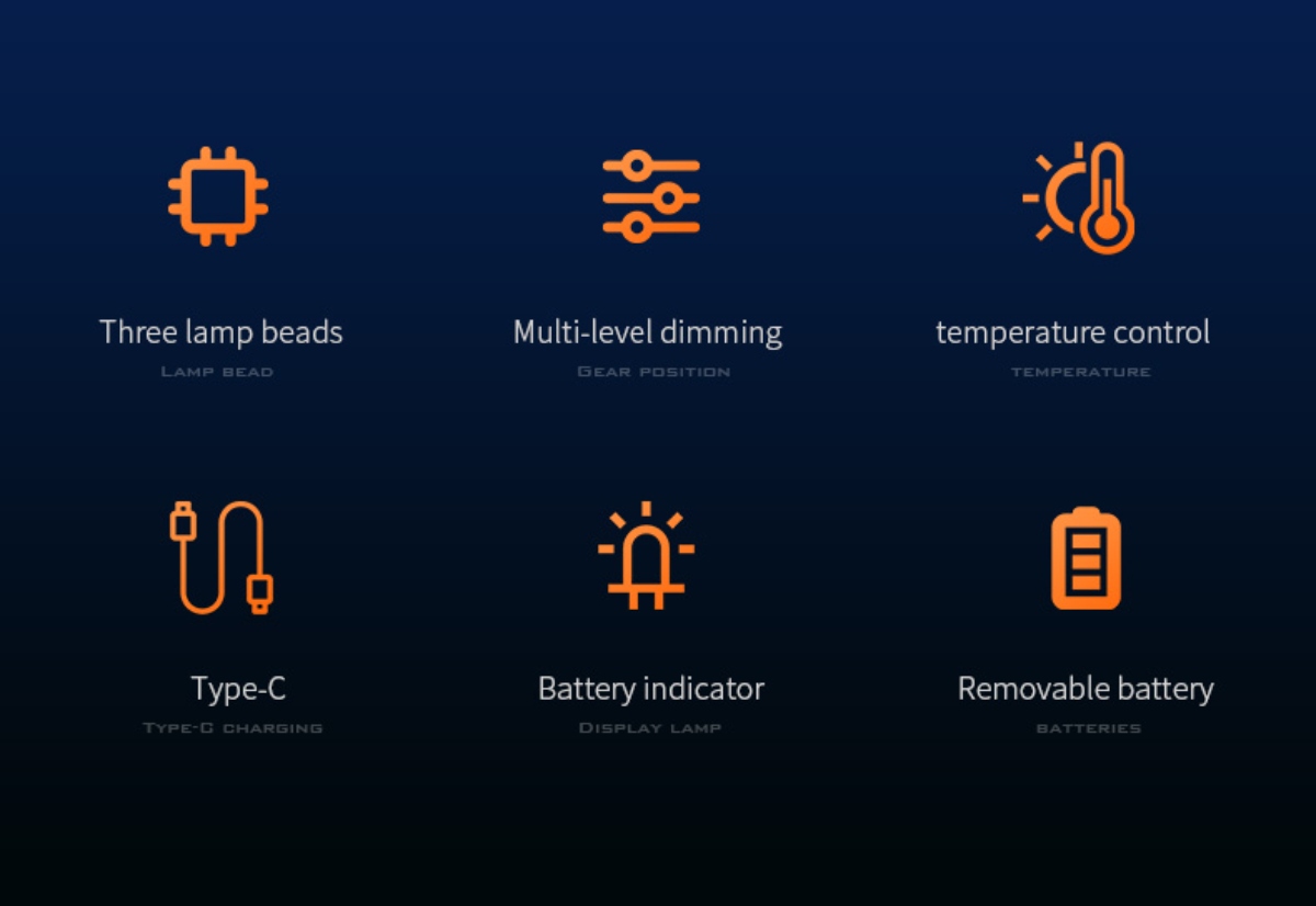 Modes:Low light-Medium light-Strong light-Strobe-SOS/Turbo